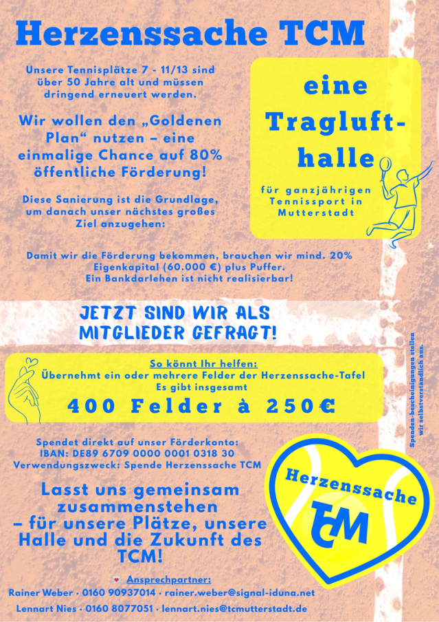Wir begrüßen euch auf der Homepage des TC Mutterstadt. Auf den folgenden Seiten möchten wir uns vorstellen und euch einen Einblick in unseren Tennisclub gewähren.